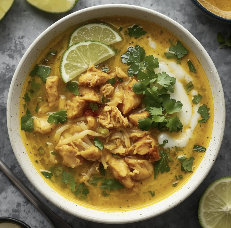 This soup is a bright, modern twist on classic chicken noodle soup. Coconut milk, lime, ginger, and turmeric bring warmth and vibrancy, while fresh cilantro and lime lift everything. Rice noodles keep it gluten-free and add that irresistible slurp factor. It’s comforting, aromatic, and nourishing—perfect for when you want something familiar yet exciting.
