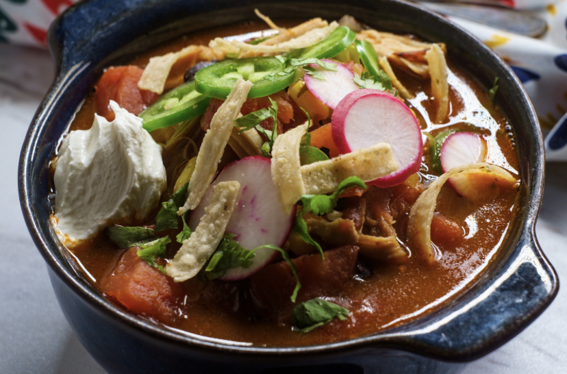 This is the choose-your-own-adventure of soups. The broth is rich and savory but still feels light, which means you can really go for it with the toppings. Tortilla chips, sour cream, cheese, avocado, hot sauce—pile it on. Served family-style, everyone builds their own bowl. It’s interactive, cozy, and somehow both filling and refreshing.